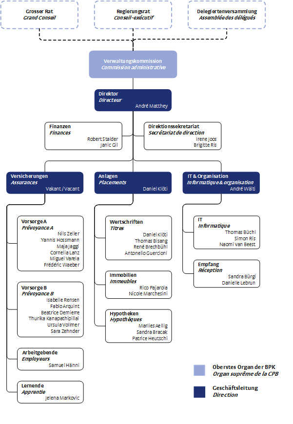 Die Aufgaben und Zuständigkeiten unserer Organe sind im Gesetz über die kantonalen Pensionskassen (PKG) festgelegt.