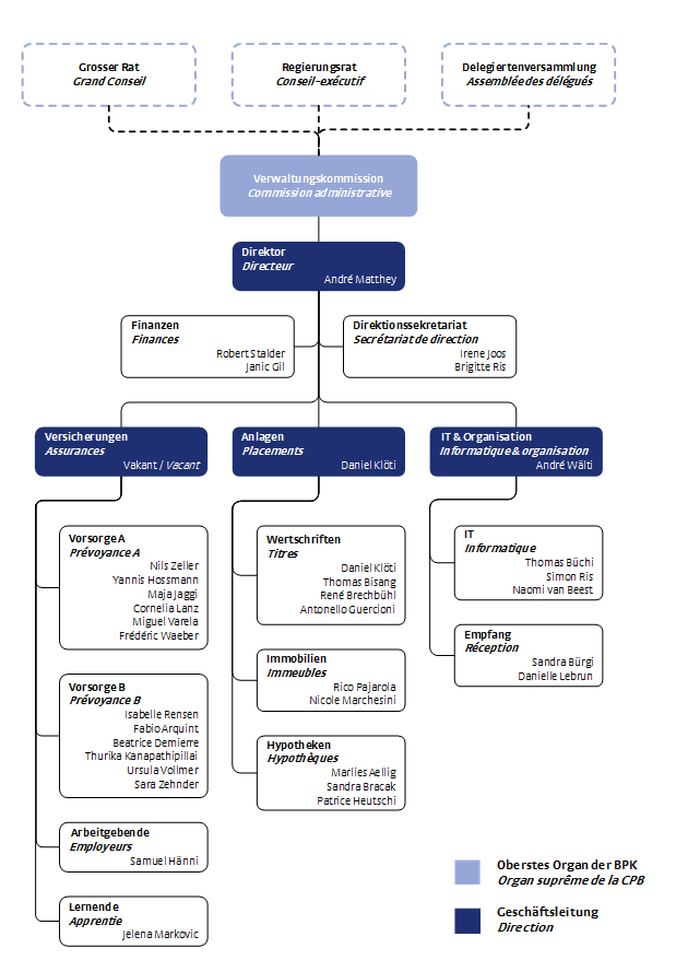 L'assemblée des délégués se compose de 150 personnes assurées de la CPB. La période de fonction est de 4 ans. L’assemblée des délégués élit parmi ses membres le bureau de l’assemblée des délégués.
