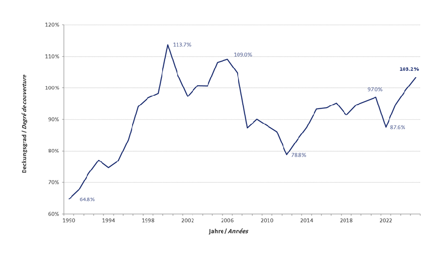 2025 stieg der Deckungsgrad von 94.9 % auf 103.2 %.